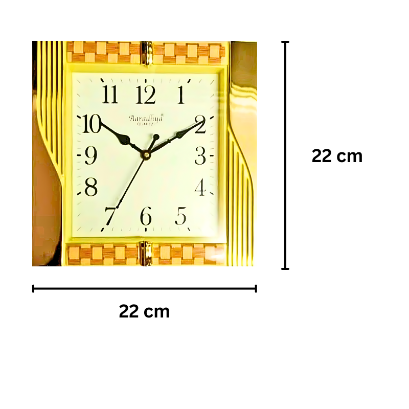 The Aaradhya Quartz Square Analog Wall Clock, sized at 22 cm x 22 cm, is a charming blend of classic design and refined elegance. The soft ivory dial creates a warm, welcoming feel, while the sleek gold frame adds just the right amount of shine to elevate your décor. Compact yet eye-catching, it’s ideal for cozy corners, bedrooms, kitchens, or office cabins.