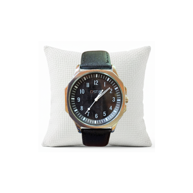 For unmatched clarity and function, choose this practical OSTIN utility watch. The timepiece features a classic black faux leather strap and a large, simple case. The deep black dial is highly contrasted with bright, large numerals from to , ensuring excellent visibility in any light. This strong, clean design gives the watch a classic military or field-watch aesthetic. Powered by quartz, this dependable timepiece is an excellent choice for anyone who prioritizes clear time-telling and a bold, functional look in their everyday accessories.