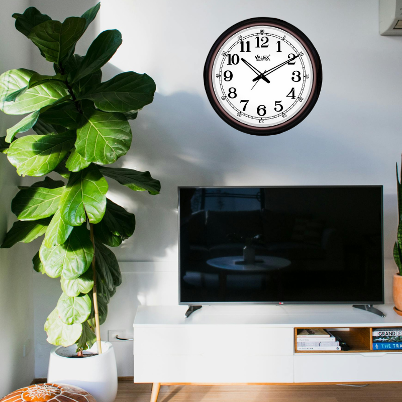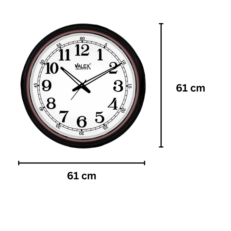 Make your wall stand out with the Valex Quartz Premium Round Analog Wall Clock, a grand timepiece measuring 61 cm x 61 cm. Designed to impress, its deep burgundy frame exudes richness and royalty, perfectly balanced by a crisp white dial that enhances readability and contrast. The large size instantly becomes the focal point of any space—ideal for living rooms, hallways, or office lobbies.